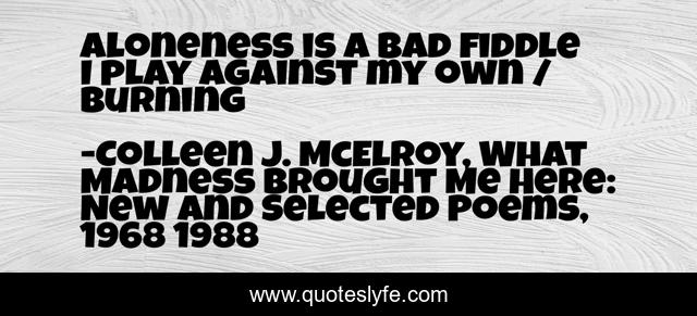 This page presents the quote "aloneness is a bad fiddle I play against my own / burning". Author of this quote is Colleen J. McElroy, What Madness Brought Me Here: New And Selected Poems, 1968 1988. This quote is about alone, loneliness, music,.