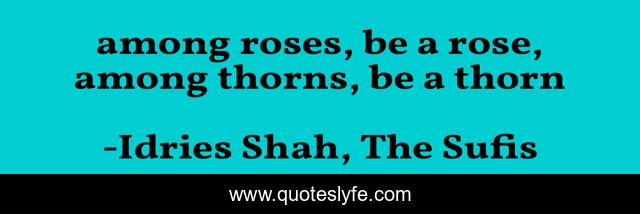 This page presents the quote "among roses, be a rose, among thorns, be a thorn". Author of this quote is Idries Shah, The Sufis. This quote is about behaviour, sufism, sufis, psychology, wisdom,.