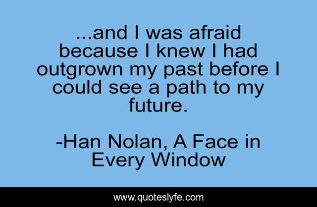 This page presents the quote "...and I was afraid because I knew I had outgrown my past before I could see a path to my future.". Author of this quote is Han Nolan, A Face in Every Window. .