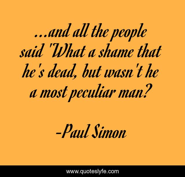 This page presents the quote "...and all the people said 'What a shame that he's dead, but wasn't he a most peculiar man?". Author of this quote is Paul Simon. This quote is about neighbors, sad, rumors, songs,.