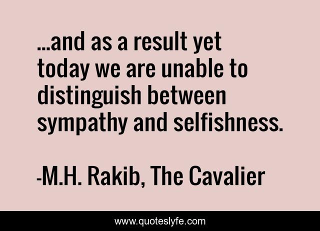 This page presents the quote "...and as a result yet today we are unable to distinguish between sympathy and selfishness.". Author of this quote is M.H. Rakib, The Cavalier. This quote is about selfishness, sympathy,.