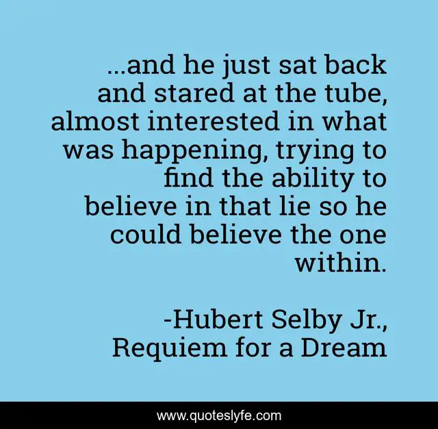 "Hubert Selby Jr., Requiem for a Dream Quotes." Quoteslyfe.com, 2025. Fri. 05 Dec. 2025. <https://www.quoteslyfe.com/quote/and-he-just-sat-back-and-stared-252544>.