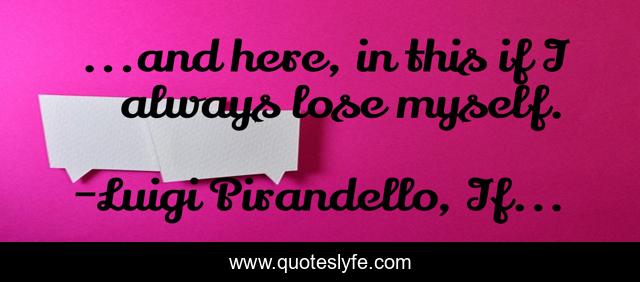 This page presents the quote "...and here, in this if I always lose myself.". Author of this quote is Luigi Pirandello, If.... This quote is about life, literature, destiny, quote, luigi-pirandello, if,.
