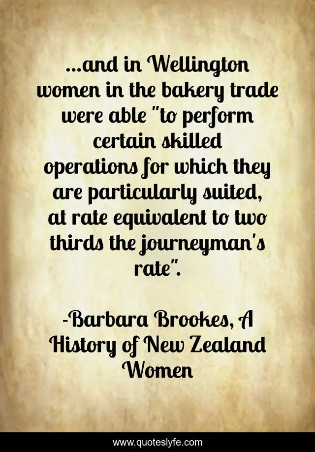 "Barbara Brookes, A History of New Zealand Women Quotes." Quoteslyfe.com, 2025. Tue. 09 Dec. 2025. <https://www.quoteslyfe.com/quote/and-in-Wellington-women-in-the-bakery-101797>.