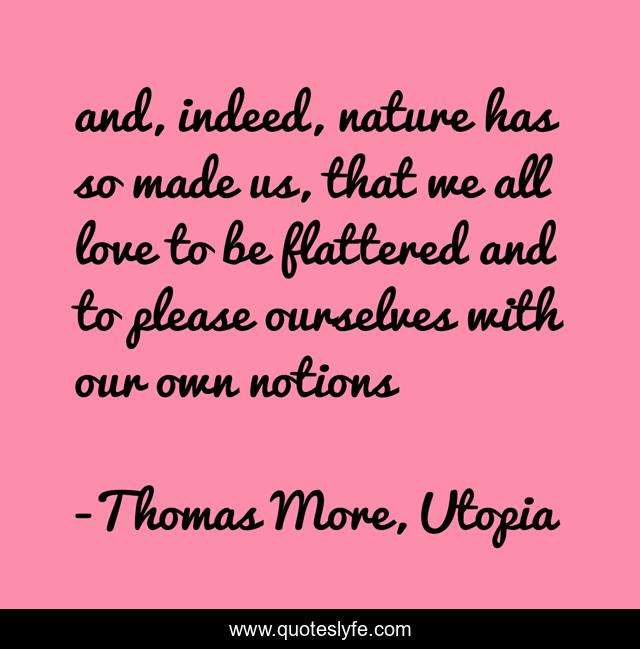 This page presents the quote "and, indeed, nature has so made us, that we all love to be flattered and to please ourselves with our own notions". Author of this quote is Thomas More, Utopia. This quote is about human-nature, ego,.