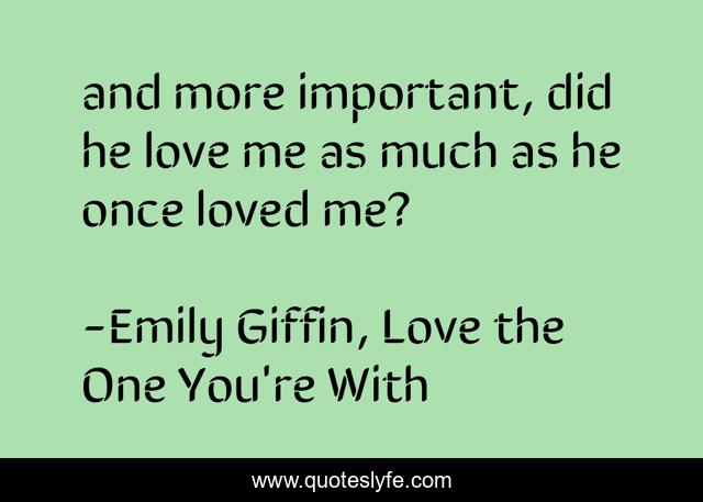 "Emily Giffin, Love the One You're With Quotes." Quoteslyfe.com, 2025. Sat. 06 Dec. 2025. <https://www.quoteslyfe.com/quote/and-more-important-did-he-love-me-216217>.