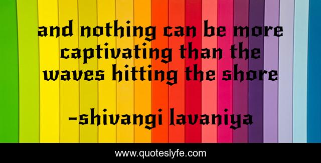 This page presents the quote "and nothing can be more captivating than the waves hitting the shore". Author of this quote is shivangi lavaniya. This quote is about hitting, nothing, shore, captivating, waves,.
