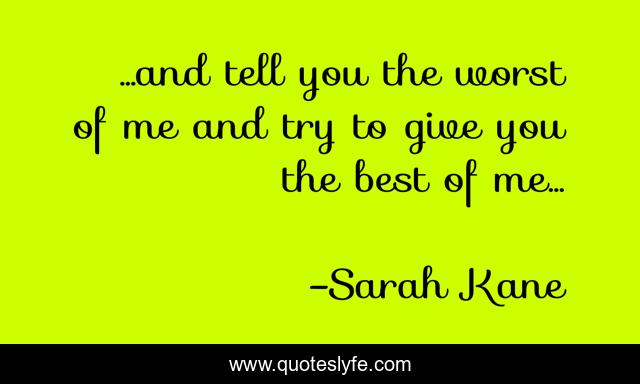 This page presents the quote "...and tell you the worst of me and try to give you the best of me...". Author of this quote is Sarah Kane. This quote is about cute, playwright, plays, love, quote, poetry, best, crave, vow,.