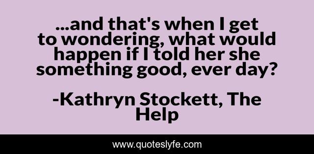 This page presents the quote "...and that's when I get to wondering, what would happen if I told her she something good, ever day?". Author of this quote is Kathryn Stockett, The Help. This quote is about hope, self-esteem,.