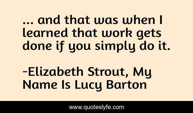 This page presents the quote "... and that was when I learned that work gets done if you simply do it.". Author of this quote is Elizabeth Strout, My Name Is Lucy Barton. .