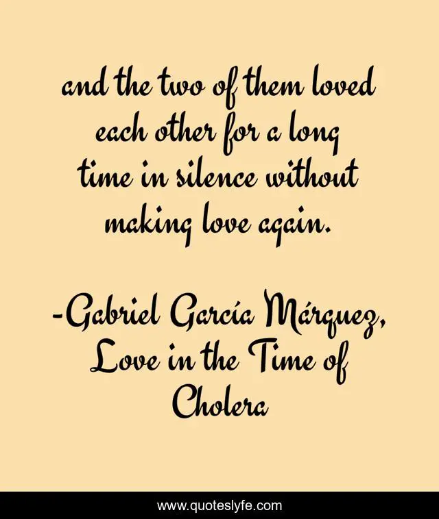 This page presents the quote "and the two of them loved each other for a long time in silence without making love again.". Author of this quote is Gabriel García Márquez, Love in the Time of Cholera. This quote is about love, affection,.