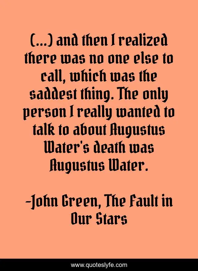 (...) and then I realized there was no one else to call, which was the saddest thing. The only person I really wanted to talk to about Augustus Water's death was Augustus Water.