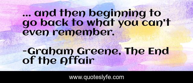 This page presents the quote "... and then beginning to go back to what you can't even remember.". Author of this quote is Graham Greene, The End of the Affair. This quote is about fate, memory,.