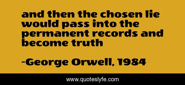 This page presents the quote "and then the chosen lie would pass into the permanent records and become truth". Author of this quote is George Orwell, 1984. .
