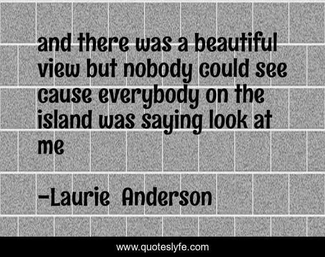 This page presents the quote "and there was a beautiful view but nobody could see cause everybody on the island was saying look at me". Author of this quote is Laurie Anderson. .