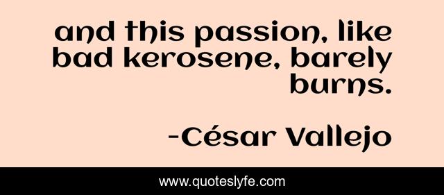 This page presents the quote "and this passion, like bad kerosene, barely burns.". Author of this quote is César Vallejo. .