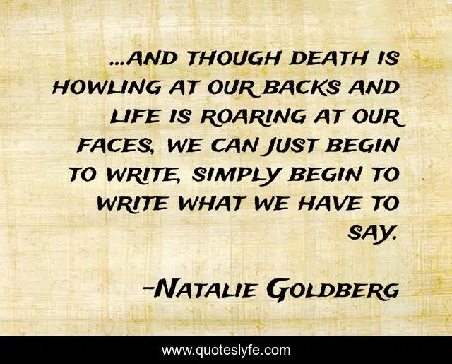 "Natalie Goldberg Quotes." Quoteslyfe.com, 2025. Sat. 06 Dec. 2025. <https://www.quoteslyfe.com/quote/and-though-death-is-howling-at-our-248923>.