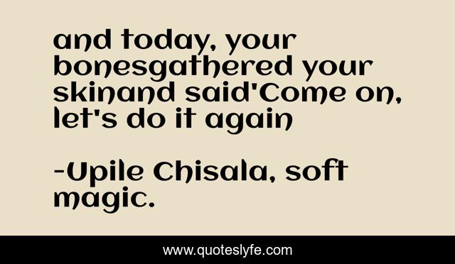 This page presents the quote "and today, your bonesgathered your skinand said'Come on, let's do it again". Author of this quote is Upile Chisala, soft magic.. This quote is about body, do-it-again,.