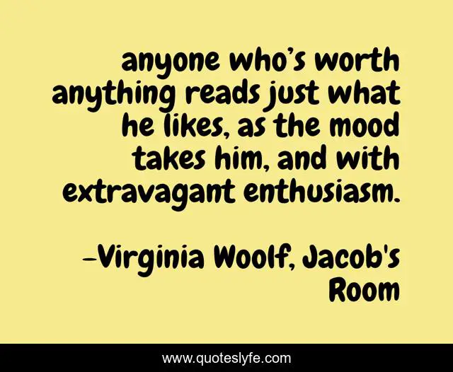 "Virginia Woolf, Jacob's Room Quotes." Quoteslyfe.com, 2025. Mon. 08 Dec. 2025. <https://www.quoteslyfe.com/quote/anyone-who-s-worth-anything-reads-just-43094>.