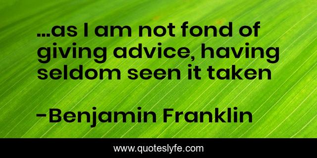 This page presents the quote "...as I am not fond of giving advice, having seldom seen it taken". Author of this quote is Benjamin Franklin. .