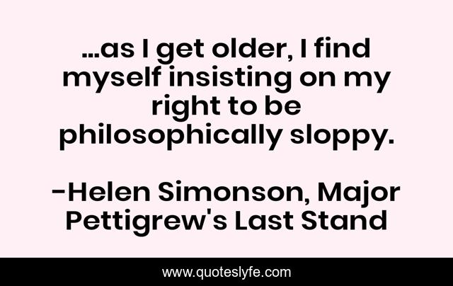 This page presents the quote "...as I get older, I find myself insisting on my right to be philosophically sloppy.". Author of this quote is Helen Simonson, Major Pettigrew's Last Stand. .