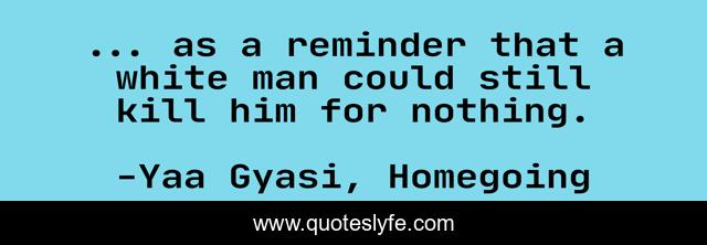 This page presents the quote "... as a reminder that a white man could still kill him for nothing.". Author of this quote is Yaa Gyasi, Homegoing. This quote is about america, black-in-america, racism, race,.
