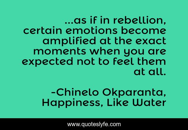 "Chinelo Okparanta, Happiness, Like Water Quotes." Quoteslyfe.com, 2025. Sun. 07 Dec. 2025. <https://www.quoteslyfe.com/quote/as-if-in-rebellion-certain-emotions-become-230619>.