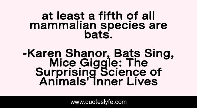 "Karen Shanor, Bats Sing, Mice Giggle: The Surprising Science of Animals' Inner Lives Quotes." Quoteslyfe.com, 2025. Fri. 05 Dec. 2025. <https://www.quoteslyfe.com/quote/at-least-a-fifth-of-all-mammalian-207308>.