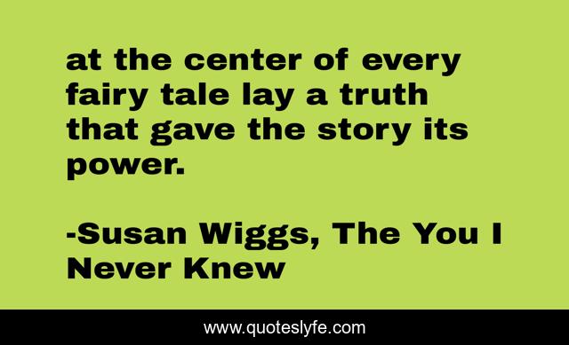 This page presents the quote "at the center of every fairy tale lay a truth that gave the story its power.". Author of this quote is Susan Wiggs, The You I Never Knew. .
