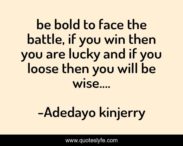 This page presents the quote "be bold to face the battle, if you win then you are lucky and if you loose then you will be wise....". Author of this quote is Adedayo kinjerry. .