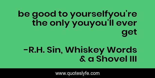This page presents the quote "be good to yourselfyou're the only youyou'll ever get". Author of this quote is R.H. Sin, Whiskey Words & a Shovel III. This quote is about love, whiskey-words-and-a-shovel-iii, poetry, hurt, r-h-sin, poems, affection,.