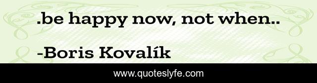 "Boris Kovalík Quotes." Quoteslyfe.com, 2025. Fri. 05 Dec. 2025. <https://www.quoteslyfe.com/quote/be-happy-now-not-when-163091>.