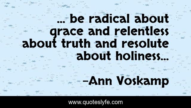 This page presents the quote "... be radical about grace and relentless about truth and resolute about holiness...". Author of this quote is Ann Voskamp. This quote is about love, parenting, learning, teaching, trying, children, affection,.