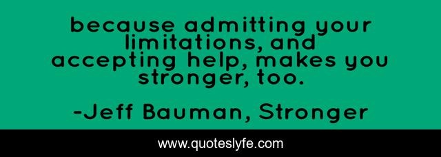 This page presents the quote "because admitting your limitations, and accepting help, makes you stronger, too.". Author of this quote is Jeff Bauman, Stronger. .