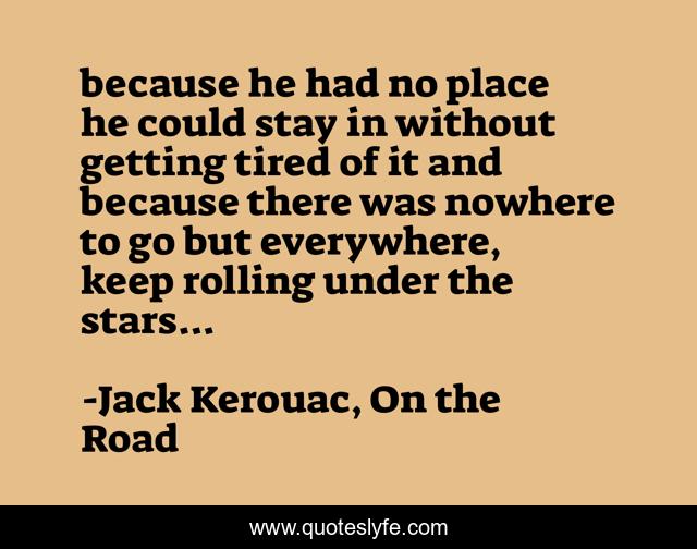 "Jack Kerouac, On the Road Quotes." Quoteslyfe.com, 2025. Mon. 08 Dec. 2025. <https://www.quoteslyfe.com/quote/because-he-had-no-place-he-could-136826>.