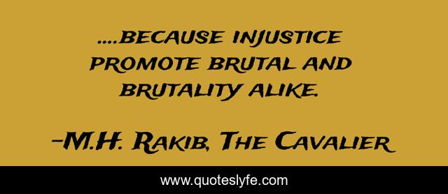 This page presents the quote "....because injustice promote brutal and brutality alike.". Author of this quote is M.H. Rakib, The Cavalier. This quote is about life, brutality, people, today-s-world, quotes, injustice, humanity,.