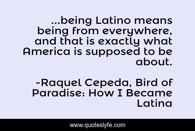"Raquel Cepeda, Bird of Paradise: How I Became Latina Quotes." Quoteslyfe.com, 2025. Sun. 07 Dec. 2025. <https://www.quoteslyfe.com/quote/being-Latino-means-being-from-everywhere-and-171238>.