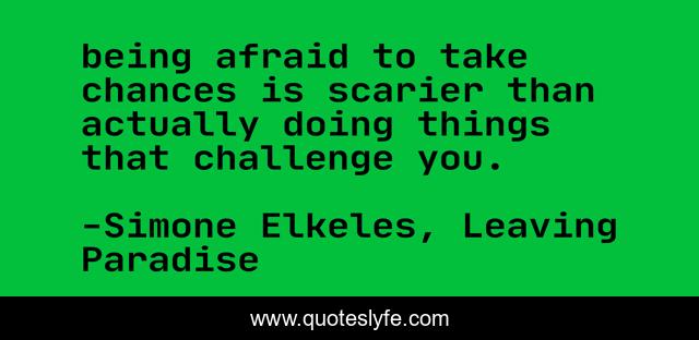 "Simone Elkeles, Leaving Paradise Quotes." Quoteslyfe.com, 2025. Mon. 08 Dec. 2025. <https://www.quoteslyfe.com/quote/being-afraid-to-take-chances-is-scarier-4478>.