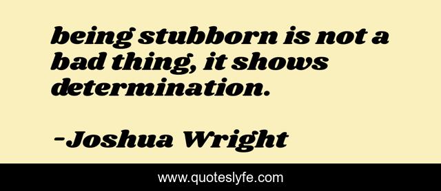 This page presents the quote "being stubborn is not a bad thing, it shows determination.". Author of this quote is Joshua Wright. .