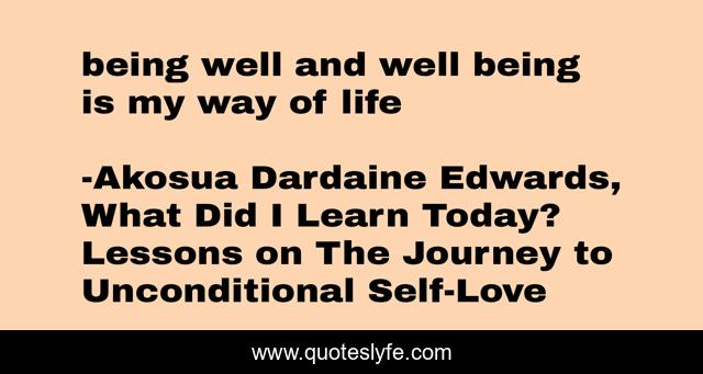 "Akosua Dardaine Edwards, What Did I Learn Today? Lessons on The Journey to Unconditional Self-Love Quotes." Quoteslyfe.com, 2025. Sat. 06 Dec. 2025. <https://www.quoteslyfe.com/quote/being-well-and-well-being-is-my-280849>.