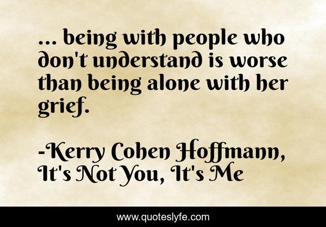 This page presents the quote "... being with people who don't understand is worse than being alone with her grief.". Author of this quote is Kerry Cohen Hoffmann, It's Not You, It's Me. This quote is about grief, understanding,.