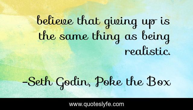 This page presents the quote "believe that giving up is the same thing as being realistic.". Author of this quote is Seth Godin, Poke the Box. .