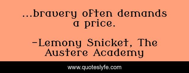 This page presents the quote "...bravery often demands a price.". Author of this quote is Lemony Snicket, The Austere Academy. This quote is about series-of-unfortunate-events, bravery, austere-academy, lemony-snicket,.