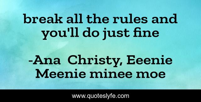 "Ana Christy, Eeenie Meenie minee moe Quotes." Quoteslyfe.com, 2025. Sat. 06 Dec. 2025. <https://www.quoteslyfe.com/quote/break-all-the-rules-and-you-ll-214260>.