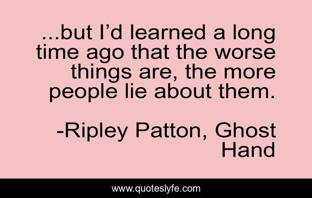 This page presents the quote "...but I’d learned a long time ago that the worse things are, the more people lie about them.". Author of this quote is Ripley Patton, Ghost Hand. This quote is about lies, insight, humor,.