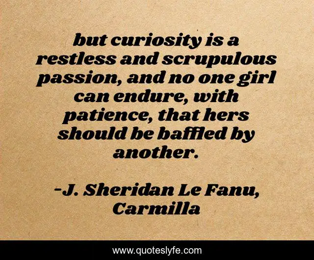 "J. Sheridan Le Fanu, Carmilla Quotes." Quoteslyfe.com, 2025. Fri. 05 Dec. 2025. <https://www.quoteslyfe.com/quote/but-curiosity-is-a-restless-and-scrupulous-218326>.