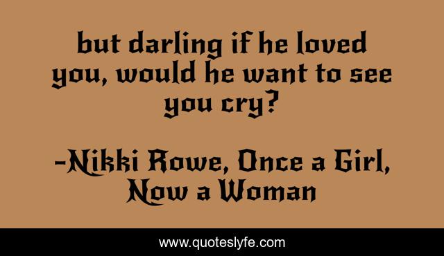 This page presents the quote "but darling if he loved you, would he want to see you cry?". Author of this quote is Nikki Rowe, Once a Girl, Now a Woman. This quote is about true-love, life, love, life-lessons, affection,.