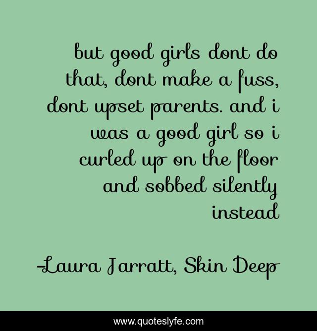 This page presents the quote "but good girls dont do that, dont make a fuss, dont upset parents. and i was a good girl so i curled up on the floor and sobbed silently instead". Author of this quote is Laura Jarratt, Skin Deep. This quote is about good-girl, life, sad, teenage, skin-deep,.