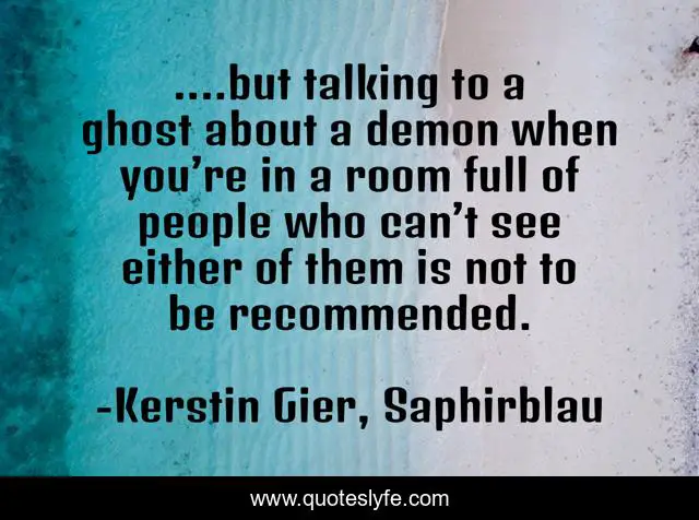 This page presents the quote "....but talking to a ghost about a demon when you’re in a room full of people who can’t see either of them is not to be recommended.". Author of this quote is Kerstin Gier, Saphirblau. This quote is about fiction-novel, quotes, kerstin-gier, saphirblau, books-reading-sapphire-blue,.
