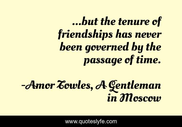 This page presents the quote "...but the tenure of friendships has never been governed by the passage of time.". Author of this quote is Amor Towles, A Gentleman in Moscow. .